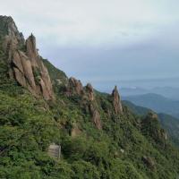 三清山又名少华山位于中国江西省上饶市玉山县与德兴市交界处。因玉京、玉虚、玉华三峰宛如道教玉清、上清、太清三位尊神列坐山巅而得名。其中玉京峰为最高,海拔1819.9米,是江西第五高峰和怀玉山脉的最高峰,也是信江的源头。三清山是道教名山,世界自然遗产地、世界地质公园、国家自然遗产、国家地质公园。《中国国家地理》杂志推选为“中国最美的五大峰林”之一;中美地质学家一致认为是“西太平洋边缘最美丽的花岗岩”。