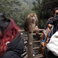 成都包车去的峨眉山。一大早出发的,到哪里都中午了。爬山没多会儿孩子就睡着了只能下山,还好在出口的地方看到几只,要不真就白去一趟。不过猴子还真有点凶呢。