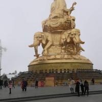 峨眉山金顶的大佛、金殿在蓝天白云间金碧辉煌非常壮观,但山上云雾浓厚,经常云遮雾罩看不清楚,因此需要合适的时间和运气。同样,大多数时间峨眉的山色景致也会被迷雾笼罩,白茫茫一片。