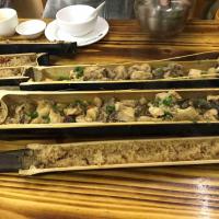 去龙脊梯田司机非常准时的到酒店门口等我们了,一路不厌其烦的回答我们的问题,途中在一个寨子吃了顿饭,人均60元左右,自己点的,竹筒鸡、泉水鱼、竹筒饭、豆腐汤性价比还可以,不算贵,值得推荐!来回商务车很方便,不用排队换车。错过最佳观景时间,就算