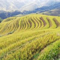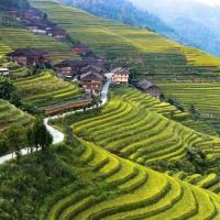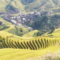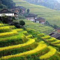 龙脊梯田位于广西龙胜各族自治县龙脊镇,从广义上说叫龙胜梯田。龙脊梯田整齐有序,线条丰富多彩,线条形状以曲线为主,曲线赋于人们一种动态美,尤其是那些长长的曲线和波浪线,使人联想到这些梯田好像是天上飘落的彩带。 这里溪流众多,水源充足,山上植被四季常青。山寨的房屋是清一色的吊角楼,错落有序的山寨与大山融为一体,古朴清雅,画意十足,来到金坑大有返璞归真、回归自然之感。