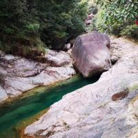 黄山周边景点太多了,处处都美不胜收。翡翠谷又叫情人谷,山势并不高,半小时左右就可以走到最深处。沿途的溪水都是碧绿的,上游是当地居民的饮用水源,清凉清澈。步行强度不大,适合遛娃。