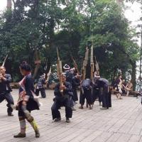 岜沙苗寨本身建筑特色不大,没有什么特别。说真的还不如占理和大小黄岗的那些村寨。但是表演节目确实值回一点票价。特别是表演过程中放的都是真枪炮,削毛去发都是真人表演。