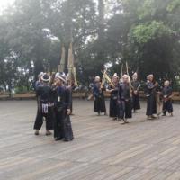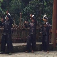 岜沙苗寨不大,号称最后一个持抢部落。去的那天较早,赶上早9:30的拦门欢迎仪式,第一段是吹竹笙表演,第二段是朝天放火枪表演。寨子中间有一座亭子,中间个供着一巨大树根,据说树身供献给修毛主席纪念堂了。寨民比较淳朴。