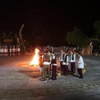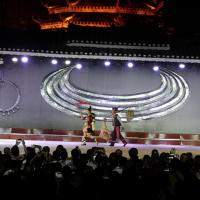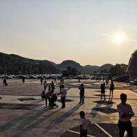 肇兴侗寨景区大门前,一排新造的侗寨建筑,亮起漂亮的灯光,看来很是漂亮。再配合上小水池,倒影也看似不错,但灯光太多太杂太乱了。这个古镇,被旅游公司好好的规划过,不少的旧建筑都被不同程度的翻新及『翻旧』,令整体比较协调及统一。还在生活着的古镇,