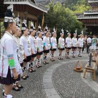 肇兴侗寨建于盆地之中。小河穿寨而过,两边是木质楼房和慢慢转动的水车。步入气势恢宏的寨门。侗族姑娘唱着大歌、端着美酒,笑盈盈地请您喝上一杯拦门酒。情在歌声中,情在酒碗里。