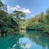 大七孔的路只有一条,沿着入口直走,或者你可以选择坐船,一个人20,也不算贵。我们选择的是先自己步行一程,等回来的时候在坐船。大七孔的水单从颜色上看是比小七孔逊色不少的,但是其余方面我觉得完胜小七孔。