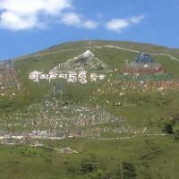 我首先游览著名的塔公寺(10元),规模较大,有好几间色彩鲜艳的大殿,寺内挂着的经幡在湛蓝的天空下飘扬,寺后山坡上也插满了经幡,像有千军万马在摇旗呐喊。寺门外倚墙坐着一排老年藏民在聊天或休息,我拍照时他们都用手遮挡,于是我就假装到处取景,偷拍