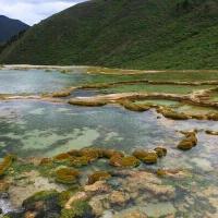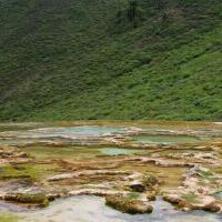 泉华滩是个钙化池,景区门口有藏民收门票,要价25一人,被我们降价到20一人。泉华滩有“小黄龙”之称。和黄龙一比规模真的是小,但相比于黄龙钙化池的只可远观,泉华滩则显得亲民多了。你可以走进它,更可以触摸它。池水没有黄龙绚丽但依旧多彩缤纷,但池