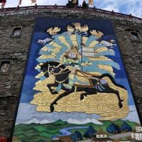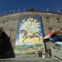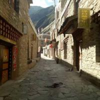 今晚夜宿甘堡藏寨,上千户藏族石头垒砌的房屋依山傍水,错落有致。漫步寨中,随处可见的白塔,经幡,转经筒,唐卡,图腾雕塑,悠久的屯兵文化,充满着神秘,神圣的感觉。第一次住藏族人家,很是新鲜,这是一个四口之家,悠闲富足,热情好客,老板娘厨艺十分了