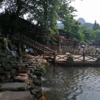 住在附近的山上,白天下山来玩柳江古镇。一路看到很多店家都在烤兔,鸡,肋排,准备晚餐。古镇依水而建,跟我们江南的古镇完全不一样,因为天气热,我们一行人还坐下泡了泡脚,非常凉快。旅客不多,逛的很舒心。
