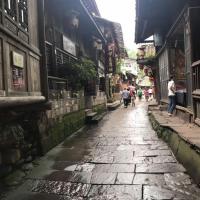 柳江古镇是四川著名的古镇,始建于南宋时期,赶上下雨的天气,坐在古镇感受独有的景致:“烟雨柳江”,别有一番韵味。古镇上随意逛逛,感受沧桑古朴。