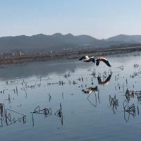 这是贵州毕节威宁草海,水域面积46.5平方公里。是一个完整、典型的高原湿地生态系统,是黑颈鹤等228种鸟类的重要越冬地和迁徙中转站。草海是贵州最大的高原天然淡水湖泊、中国Ⅰ级重要湿地、国家AAAA级旅游景区;世界十大观鸟基地,被美国国家地理