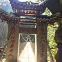 风景优美,走到山下,石门河位置又超级凉快!途中有吊索桥,有河里的彩色石头,其实还有更多项目,溪降,穿越,漂流,攀岩等等。大自然的鬼斧神工凿出悬崖峭壁,真的很美!山涧中碧水潺潺,很适合夏季旅游!穿行在绿林中,幽静而心旷神怡!云雾缭绕,美轮美奂