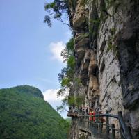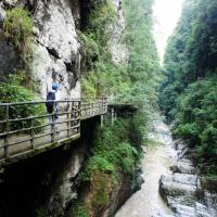 建始石门河,以为是河,结果是沿着峡谷走了六公里,不过风景很好,值得一看,山与水结合,山_险峻,水_清澈,意境优远,尽管走得有点累。整个景区人不是很多,但景色迷人,空气清新,绝壁栈道绵延起伏,峡谷陡峭,河水冰凉刺骨,是真正亲近大自然的好去处