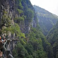 6日去的石门河,由于是假期尾声,天又下着小雨,景区的游客不多,让我可以悠闲的欣赏美妙的峡谷风光。下雨天没有划小舟,有点遗憾。个人觉得比云龙地缝好玩,绝壁栈道也很险峭,全程走走停停大概五个多小时,同行十大三小玩的很开心!