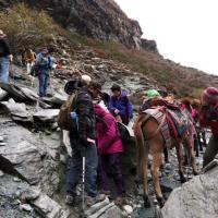 去往牛奶海的一路,完全是在挑战人的各种极限,克服身体极限要有勇气和体力,更要有坚持到底的毅力!从洛绒牛场出发,骑着马上山,到牛奶海来回需要三个小时,关键是中间有三分之一的路途要自己爬上去