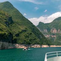 巫山小三峡景色秀丽,过去的小川在江水上涨后变为了小河,两岸峰峦峭壁叠起,小游船划过碧绿水面带来一抹水迹,缈缈中已无人烟居住痕迹,只余悬棺数处。安静的小三峡,游船上也安静了下来,安静真好。