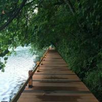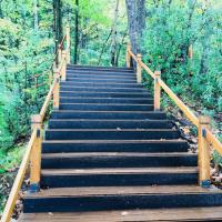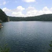 三角龙湾这个景点真的很赞,推荐大家也都去玩玩。三角龙湾,坐落在辉南县内海拔833米的山上,是距今20万年前的一次火山喷发后形成的火山湖,因湖面呈三角形而得名,湖面宽阔,山影重重,一阶木梯,可以带你达到领略全湖风景的红色山亭,一路向上,感受湖