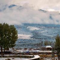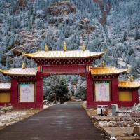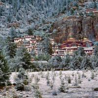 邦普寺是黄教寺庙,庙宇不大,但是却很精致,虔诚的教徒围着寺庙转着转经筒。寺庙里的小松鼠不怕人不停的跑来跑去。邦普寺取山气之势,取雪水之灵气,寺庙随着山势凿岩而建,在远处雪山,近处森林的映衬下,具有一种神秘的魅力。