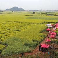 罗平金鸡峰丛是中国四大峰丛之一,座座独峰犹如花海中荡漾的岛屿,群峰耸立,山形万象,置身于花的世界,眼前是一望无际的金黄色海洋,令人目不暇接。这峰林美景吸引了众多中外游客,金鸡峰丛也成为海内外摄影家纷至沓来的一块摄影宝地和热土。
