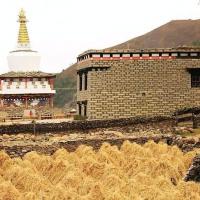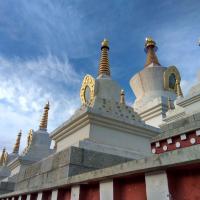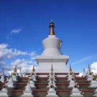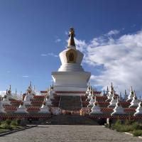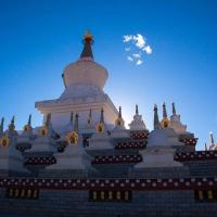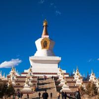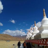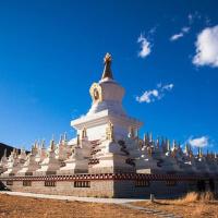 尊胜塔林也称为白塔寺,在稻城县城,为甘孜州最大的白塔。白塔的主体建筑为一座高达37米的大宝塔,宝塔底三层宝座均按北京天坛祈年殿底座比例大小而兴建。当地藏您每天早中晚都会在这里转圈祈福。