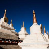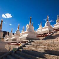 尊胜塔林公园是稻城县人民最大的一个广场,由108座塔组成。据说要沿着塔走三圈算是祈福的意义,不能走双圈,因为在藏族双圈是不够吉利的。108座白色的塔在阳光的照耀下,金色的塔尖闪闪发光,气势恢宏。