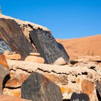 尊胜塔林位于县城入城处,距县城约500米,占地面积36062平方米,由一个主塔和108个小塔组成,每天也都有人来转经。我们来到时候正值下午,艳阳高照下塔林格外引人瞩目。
