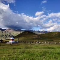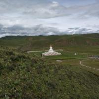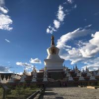 尊胜塔林在稻城有着特别重要的地位,在稻城人心里它堪比一座神圣的寺庙。去稻城路上就能看到它,很远就能看到,它周围都是空旷的草原,一座白色的建筑物坐落在那,顶部是金色的。在空旷的草原上,在碧草蓝天下,这简直是一副美不胜收的童话画面。白塔很多当地