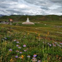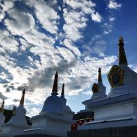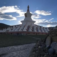 尊胜塔林为甘孜州最大的白塔,据说,当年释迦牟尼涅槃之时,众多眷属祈求世尊法身长驻,佛陀便嘱修尊胜塔,并亲自加持开光,以此代表法身。蛮漂亮的,也蛮大气的,在清晨朝阳或黄昏夕阳下更喋喋生辉。