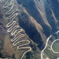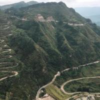 晴隆二十四道拐抗战公路,是“史迪威公路”的形象标识。古称“鸦关”,雄、奇、险、峻,有一夫当关,万夫莫开之势。从山脚至山顶的直线距离约350米,垂直高度约260米;在倾角约60度的斜坡上以“S”型顺山势而建,蜿蜒盘旋至关口,全程约4公里。短驳