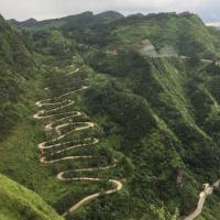 自驾去的地方晴隆二十四道拐,因为乌蒙大草原没房间,而且时间尚早,同伴一定要抗战学习,看看史迪威,于是在晴隆下高速。这个小县城里最大看点就是24道拐,于是直奔主题。要进入景区了,看路的人说不允许车开进去,要在平台上看1、走路进山6公里,来回1