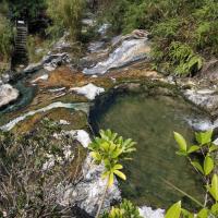 腾冲热海温泉有很多池子都被丛林包裹着,感觉很隐蔽也不吵闹,白天游完了大滚锅,然后过来泡温泉,这里人不算多,很幽静。空气中弥漫着浓浓的硫磺味道,看着郁郁葱葱的绿色植物,泡着温泉,心旷神怡。