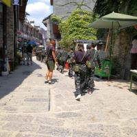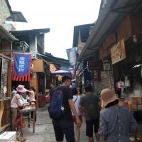 兴坪古镇是一条约1公里多长的青石板路老街,街道木板稍显老旧,墙体呈现斑驳感,有村舍几座,没有过度开发商业化,游客不是很多,街道显得还算清幽肃静。
