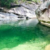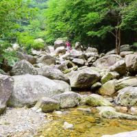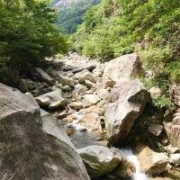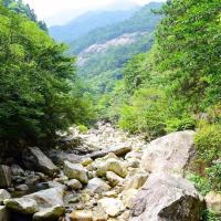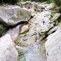 白马大峡谷景区跟旅游团去的天堂寨,第一天,白马大峡谷,先步行上山,再从峡谷边的小路走下来,泉水清凉,很舒服,我们在玩水