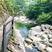 白马大峡谷风景区是天堂寨风景区内的!无需另外购票!这个景区感觉比起瀑布群风景区更好!首先如果不爬白马栈道是一点都不累的!顺着水流一直往下看!好多漂亮的潭水!但是白马栈道确实是非常值得一去的!只是第一天瀑布群风景区走的太累了!去白马栈道可以滑