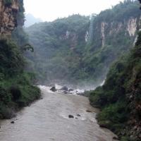马岭河大峡谷是一个非常值得游玩的地方,虽然下着雨,但是瀑布水流很大,非常振憾,特别是万马奔腾瀑布群,可惜忘了买雨衣,没得近距离接触,有点小小的遗憾。