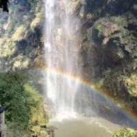 中秋节下午去马岭河峡谷,景色不错,万马奔腾瀑布很漂亮,像倾泄而出的牛乳,细看瀑布造型有立体感,真的犹如万马奔腾。还看到了双层彩虹,体会了大自然的神奇和美丽。沿着峡谷两岸的栈道走,中途还有小惊喜,容易湿身湿鞋,地面有点湿滑,要注意安全。