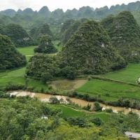 对于桂林的地貌,真的是太惊讶了,尤其是万峰林,从高处往下看,由将近2万座组成的山峰拔地而起,组成了一幅壮观美丽的景象。村子在山峰之间,感觉是如此的融洽。