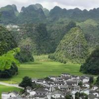 万峰林值得推荐的一个地方,锥状喀斯特地貌的群山构成了最美的峰林,点缀山间的分别是上纳灰、中纳灰、下纳灰三个布依族村落。中纳灰村中还有3棵大榕树,最大的一棵据说要20多人才能环抱。私家车可以开进村落,可惜还要赶回贵阳,时间紧任务重只能乘坐电瓶