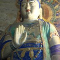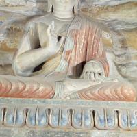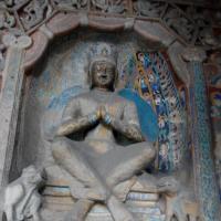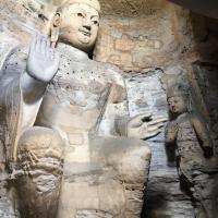 云冈石窟交通比较方便,乘坐公交可以到达,下来要走一段路进景区。云冈石窟的洞窟相对龙门石窟要少很多,规模也要小很多,这大约与北魏迁都及其历史地位有关,但部分洞窟保存相当完好,佛像及壁画色彩艳丽,造型多样,值得观赏。