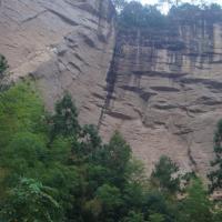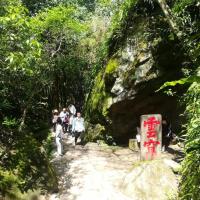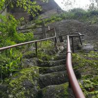 武夷山真的很美,上山途中拍一张,那天非常闷热,本来预报有雨的,爬山喘不过气,忘记拍山路了,可能因为上下都是自己的同伴的脚和头.很多人在岩石上嵌了钱币,大概是祈福的吧.