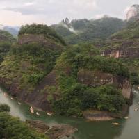 去武夷山风景区游玩,买了三天的联票,第一天中午进山,下午游览天游峰和桃源洞,住在武夷宫附近的英伦时光酒店,第二天上午坐九曲溪漂流,漂流终点就是英伦酒店,午饭后下午游览一线天和虎啸岩,第三天上午游览水帘洞和大红袍景区,下午出山坐飞机回上海。总