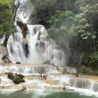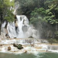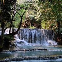 光西瀑布老挝琅勃拉邦以南30公里处,瀑布高约200多米,呈正三角形,从山上泻下相当壮观,加之四周的植被非常漂亮。三层瀑布倾泻而下,形成多个泛着蓝绿色光泽的水潭,众多当地人和老外在水中嬉戏,痛快淋漓。