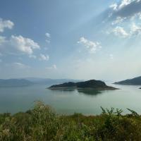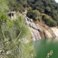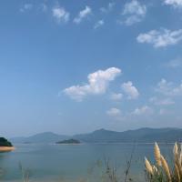 东江湖水很清很绿,像一块绿翡翠,对岸水边的小亭子应该是2号观景台虽然湖面没起雾,不过风景也挺美的。空气特别好,在这里踩踩单车运动一下超棒其实如果只是去看雾,不上四号观景台,不去别的地方,是不用买票的,走路进去就行了,但是如果要去大坝,看龙景