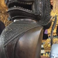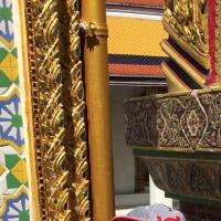 玉佛寺游客非常多,非常壮观的!整个的感觉就是金碧辉煌!里面的建筑也是各具特色!格鲁达小人表情各异,甚是可爱!蓝天白云的映衬下就更美了!玉佛寺就在大皇宫的里面,买了大皇宫的门票就可以去玉佛寺参观了,玉佛寺里最珍贵的宝贝当然是玉佛,玉佛寺的玉佛