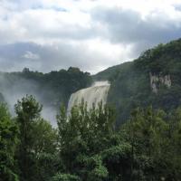 第一次去黄果树是大学时期,远远就觉得下雨了,真正的飞流直下三千尺!由水帘洞内穿过瀑布,清凉神秘,难得的体验,第二次去赶上暴雨期,想来瀑布水也是混浊发黄的,不想破坏先前的美好印象。索性没有进大门,只在门口留影就草草离开了。