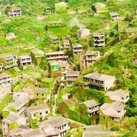 后头湾村位于浙江省嵊泗县嵊山岛东北面,上世纪90年代起,渔业发展,不少村民富裕起来。为了生活便利,村民都们陆续搬离后头湾。这是一个海岛上的老渔村,面朝大海,却人去楼空,因为村落旧址紧邻着一片坟场,当地人已经习惯于把后头湾村叫“鬼村”。20年后这里成了一个 “长满爬山虎,宛如绿色童话世界”的无人村,漫山遍野的爬山虎让这里成为了犹如童话故事里的绿野仙踪。