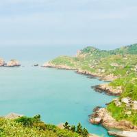 嵊泗列岛的后头湾村景色优美,风景秀丽,风光无限好,纯天然自然景观,不错的选择,就像一幅幅天然的风景画,美极了,值得推荐给大家,不错的地方。探寻绿野仙踪,背山靠水,满眼翠绿。号称无人村,现在无人居住,但游人不少。一座座二层小楼房的残垣,默默展