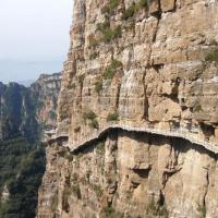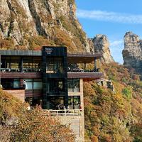 涞源白石山国家地质公园景区周围的旅馆还不错,房间卫生干净,服务态度很好而且老板做的农家菜也很不错!在景区里要爬一段山才能达到玻璃栈道,很刺激。